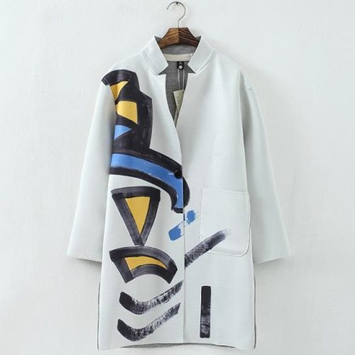 with this coat. It features chic and abstract graffiti printed pattern,looks so