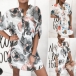 Fashion Long Sleeve Stand Collar Ink Painting Printed Dress