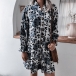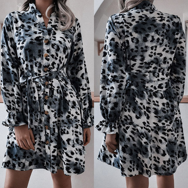 Fashion Long Sleeve Stand Collar Leopard Printed Shirt Dress
