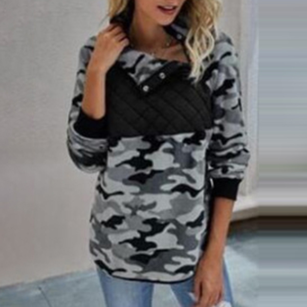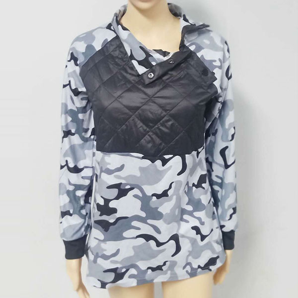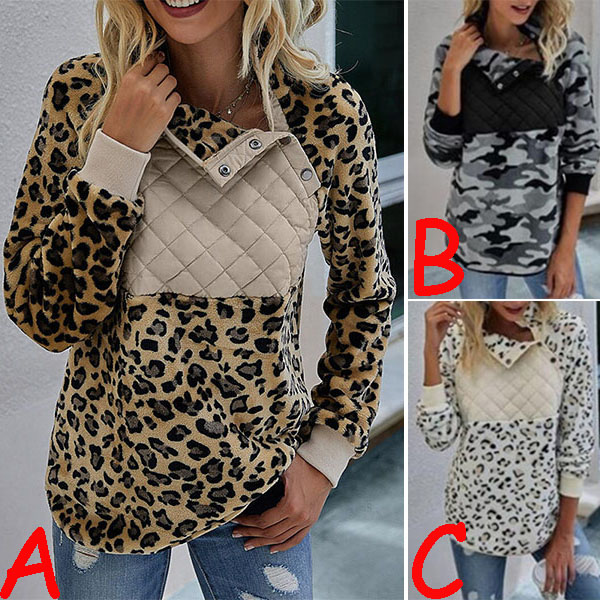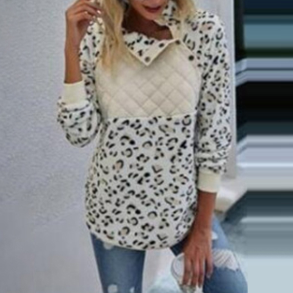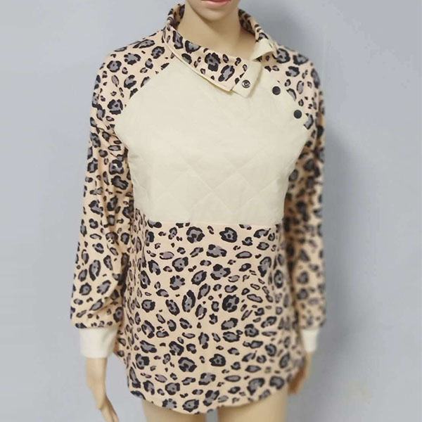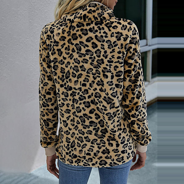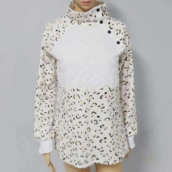 Fashion Long Sleeve Stand Collar Leopard Printed Sweatshirt