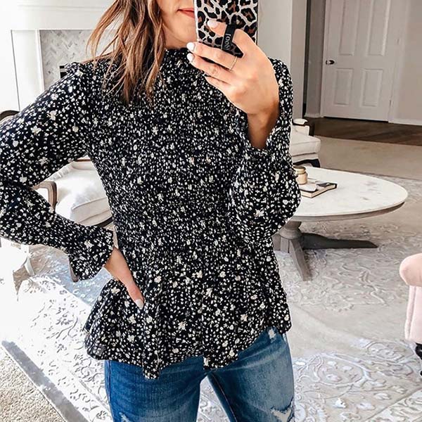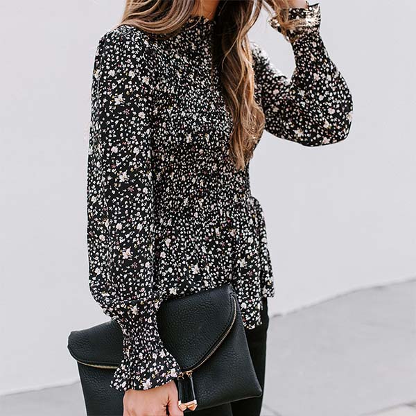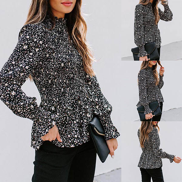 Thanks to the vibrant floral print details,this blouse can offer you a more eye-catching look. Finished with long sleeve and stand collar design,the gathered waist design can help highlight your figure. You can trust in this wonderful piece to boost your charm.