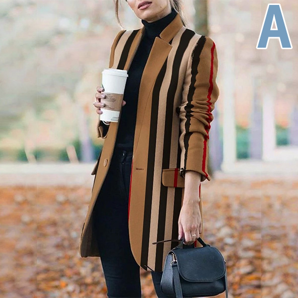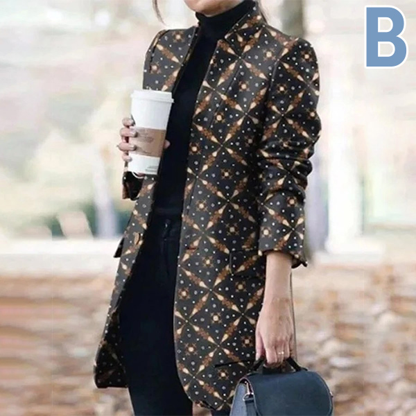 Fashion Long Sleeve Stand Collar Printed Woolen Coat