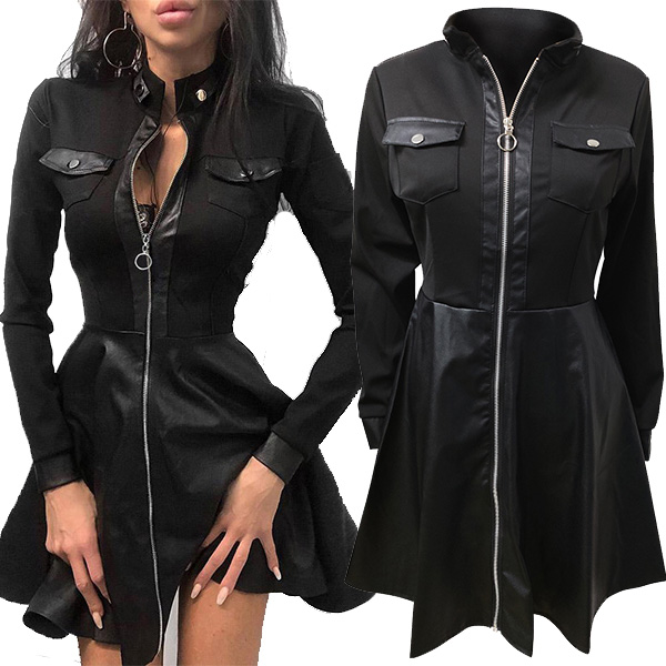 PU piece has always been a fashion item to add your temperament and it can be wore in many different occasions in daily life. The stand neck design combined with the high quality zipper and pockets on the chest, it makes you look cool and full of energy. When you dress it up with your favourite heels,you can look beautiful and charming enough!