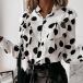 Fashion Long Sleeve Stand Collar Ruffle Printed Blouse Shirt