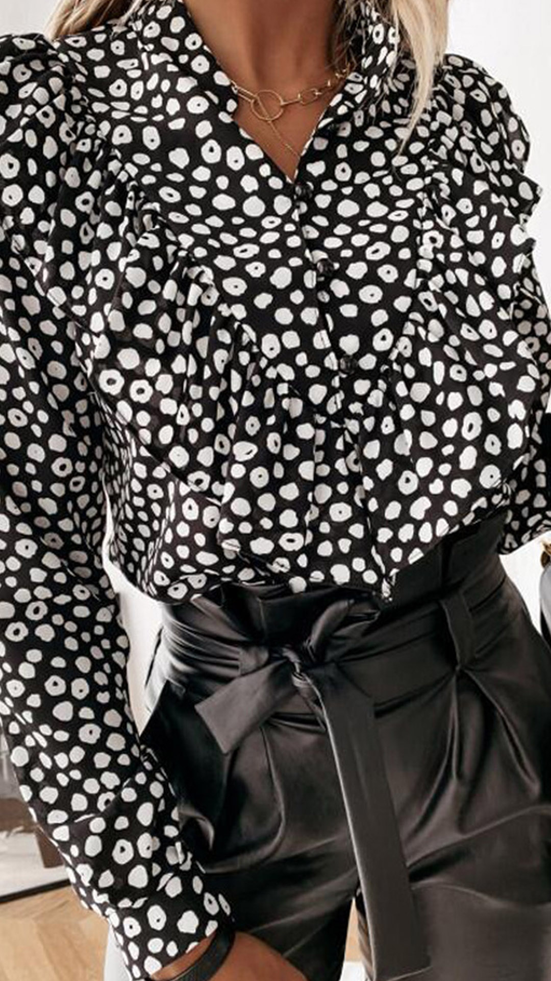 This blouse that combines of stylish and sweet vibes can easily strike your mind. Its chic printed details will make this piece look more eye-catching. Finished with long sleeve,stand collar and ruffle design,this wonderful blouse can offer you different fashion styles by teaming with different style bottoms.