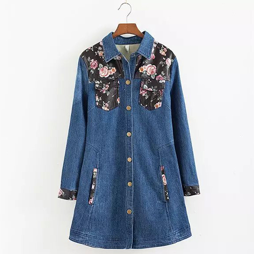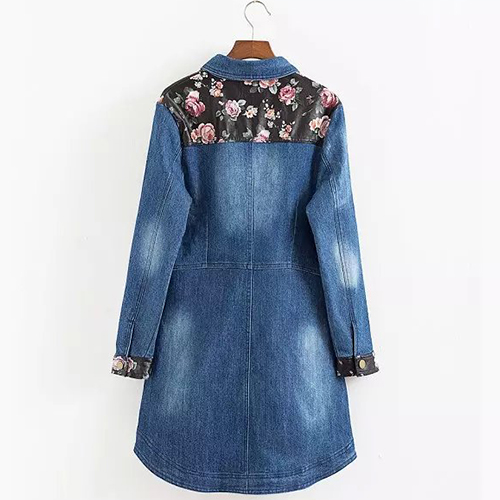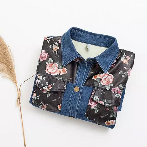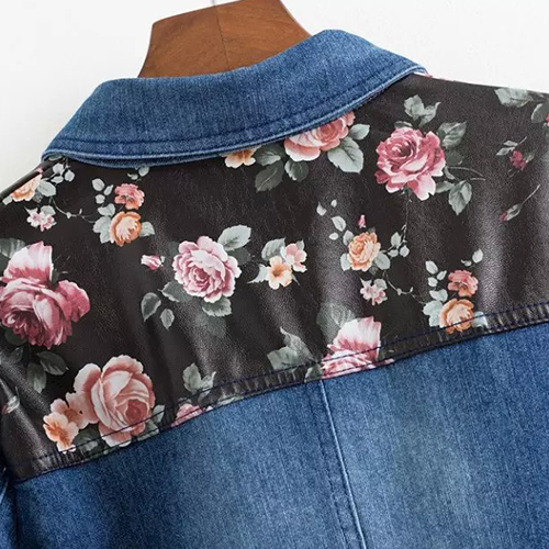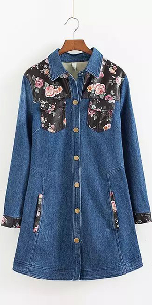 and single-breasted design. Patch spliced with floral print in front, it's very chic. The mill white