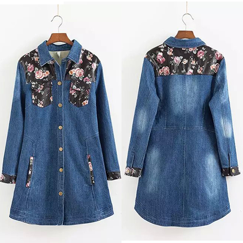 Denim is very classic element in the fashion world. The T-shirt has long sleeve, turn-down collar