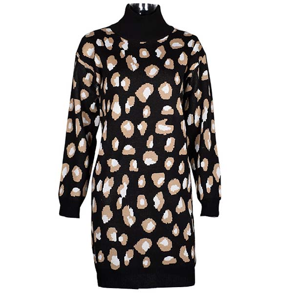 Fashion Long Sleeve Turtleneck Leopard Printed Sweater Dress