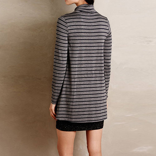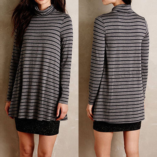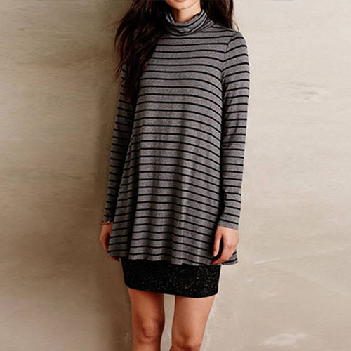 Simple and stylish. This dress features striped style,outfitted with long sleeve and turtleneck design.