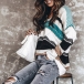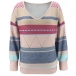 Fashion Long Sleeve V-neck Contrast Color Top
