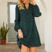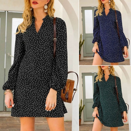 Fashion Long Sleeve V-neck Dots Printed Dress