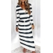 Fashion Long Sleeve V-neck Drawstring Waist Stripe Dress