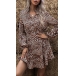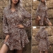 Fashion Long Sleeve V-neck Elastic Waist Leopard Printed Dress