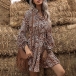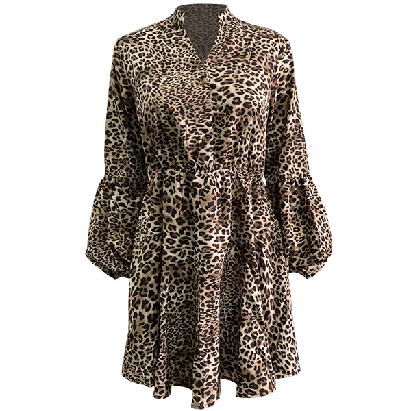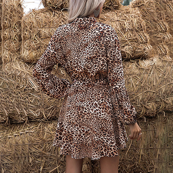For your busy workdays,you must have no time to thing about what to wear. Your routine can be much easier if you have this dress in your team. The leopard printed details make this piece look so eye-catching. Finished with long sleeve,v-neck and elastic waist,this dress also can keep the comfy while it maintains your style and personality!