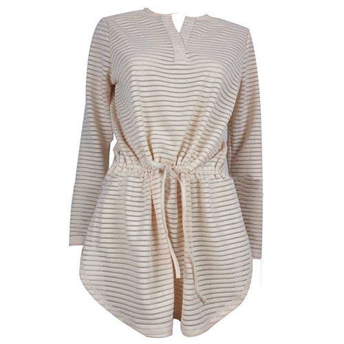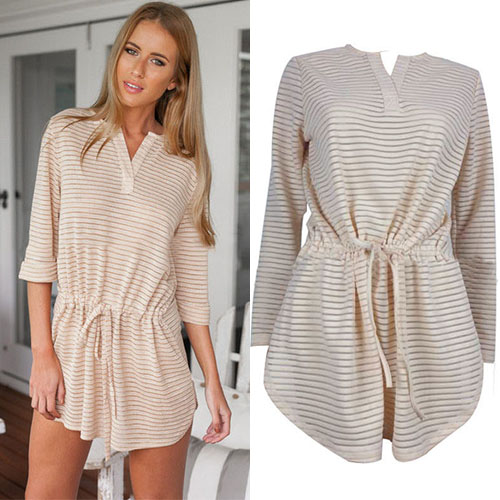 Striped style,with long sleeve,v-neck and an elastic waist,which ensures you an all-day