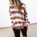 In these autumn days,this cozy yet stylish knit top would be your wardrobe staple. Designed with striped element,the v-neck and frayed hem design will further enhance its charm,while its soft fabric and loose silhouette design can keep you feeling comfortable while it offers you a casual yet stylish style.
