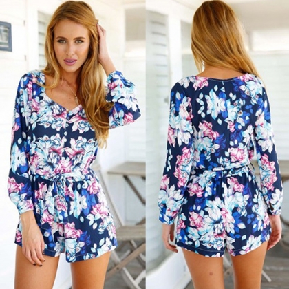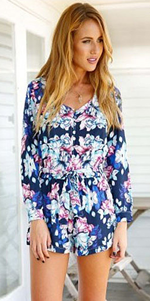 Get in touch with your girly side in this long sleeve romper. It features an allover floral print,