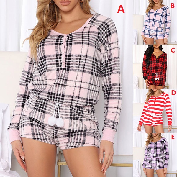 Thanks to the super soft and breathable fabric,you can have an utmost comfort in this romper. Its chic and popular printed details will make this piece look more stylish,and the hairball drawstring design can add some playful vibes. No matter for your home time or casual weekends,this piece can be your wise choice.