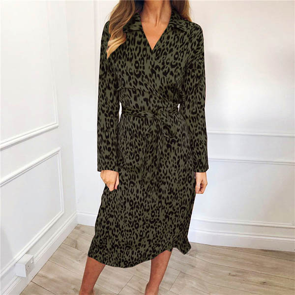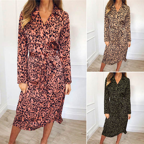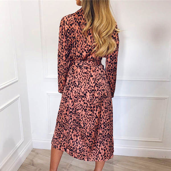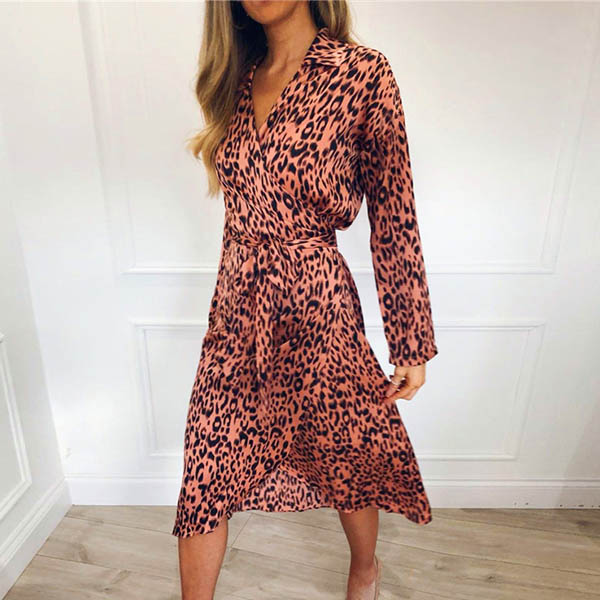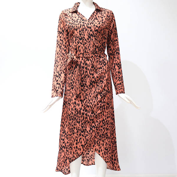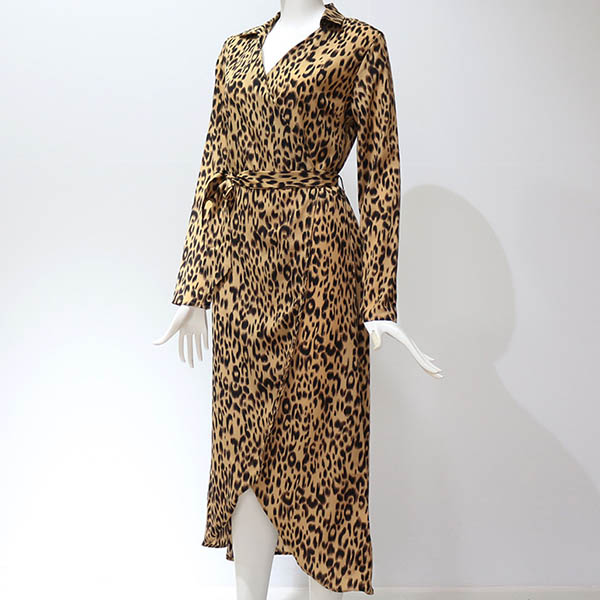 Fashion Long Sleeve V-neck Irregular Hem Leopard Printed Dress