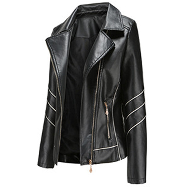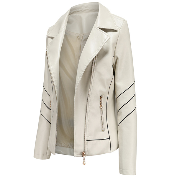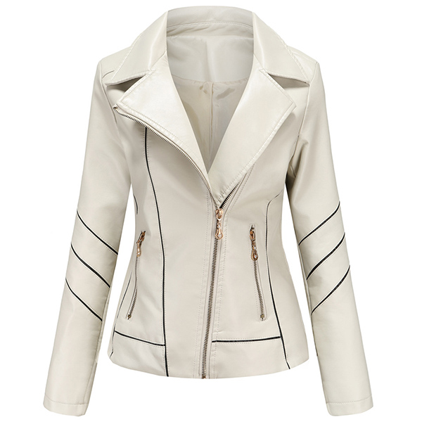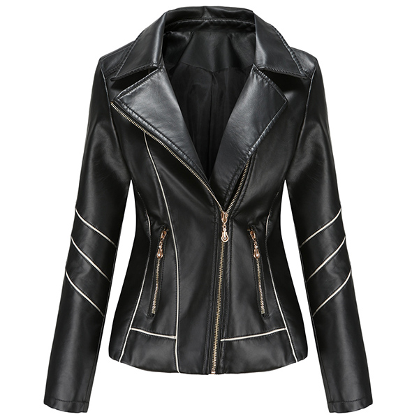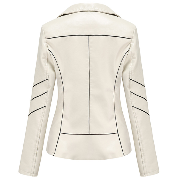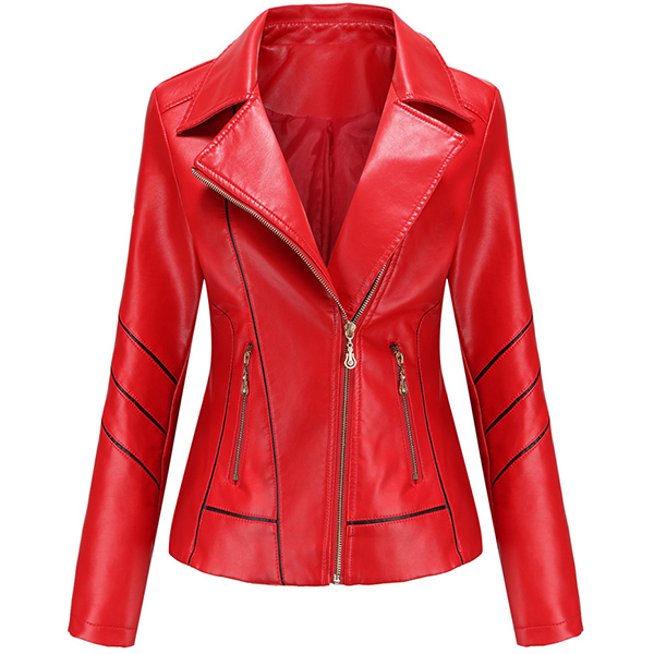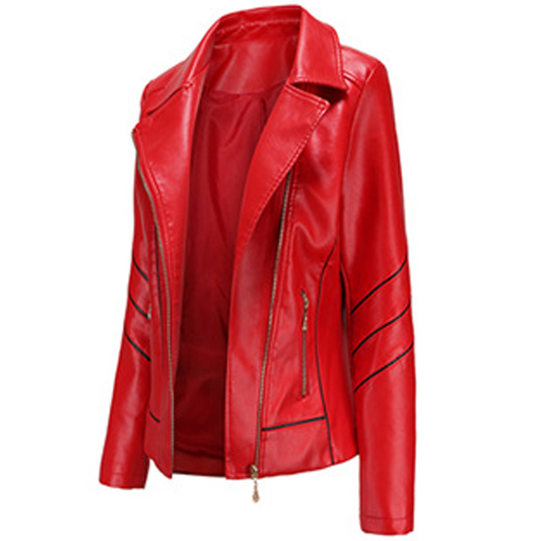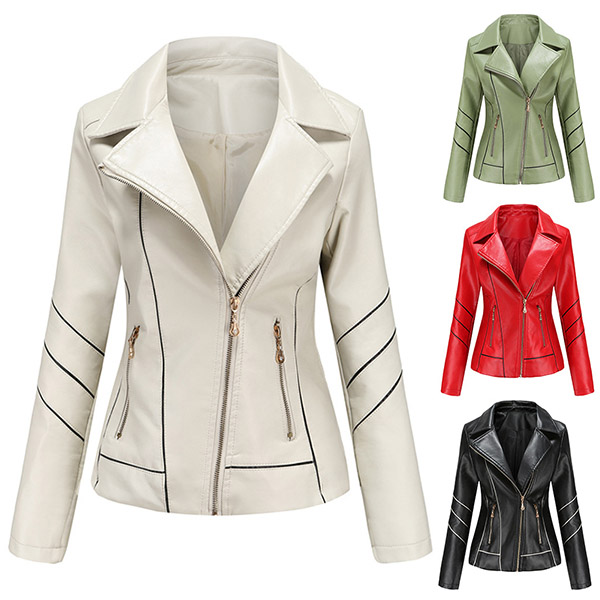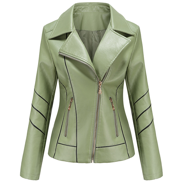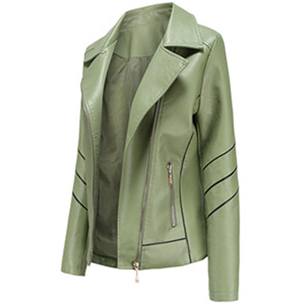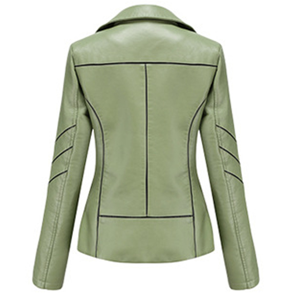 When the days get a little cold,this stylish PU leather jacket can easily arouse your attention. Solid color style,finished with long sleeve,oblique zipper and a fit silhouette,this classic jacket can keep you warm and comfy while it exude your style and charm.