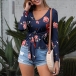 Fashion Long Sleeve V-neck Lace-up Printed Top