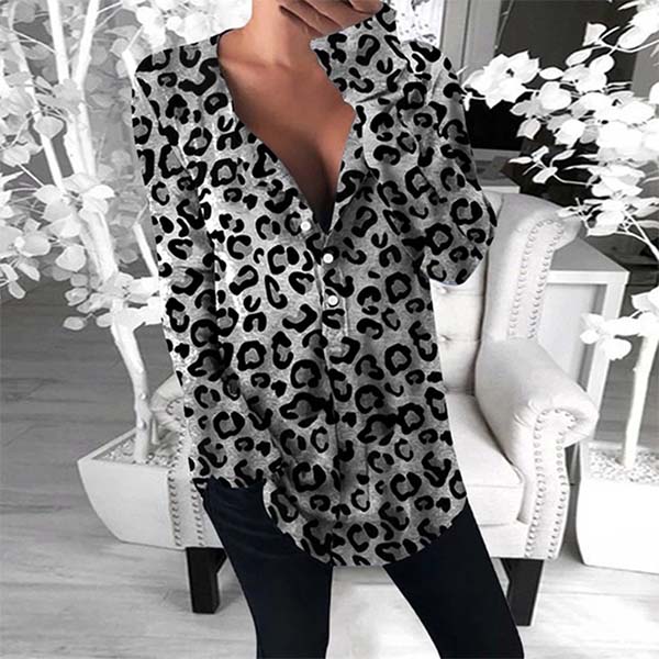 Fashion Long Sleeve V-neck Leopard Printed Blouse