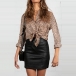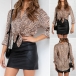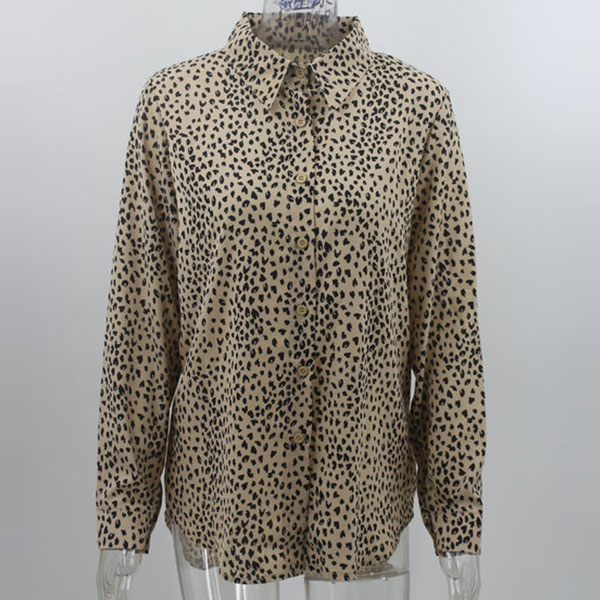 Fashion Long Sleeve V-neck Leopard Printed Shirt