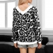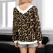 Fashion Long Sleeve V-neck Leopard Printed T-shirt