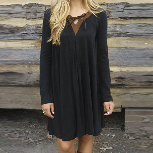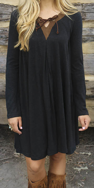 Strolling on the street in a sunny days with this dress by pairing with your tassel boots,you would