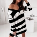 Fashion Long Sleeve V-neck Loose Stripe Knit Sweater Dress