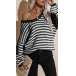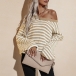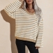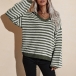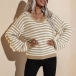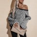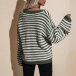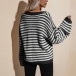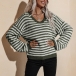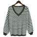 Fashion Long Sleeve V-neck Loose Stripe Knit Sweater