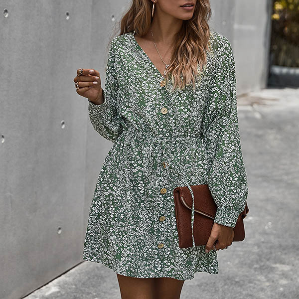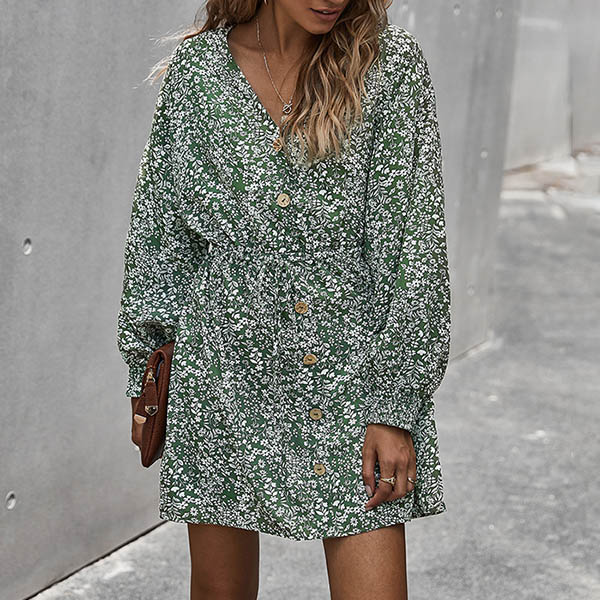 Whether for work or on the weekends, here's a piece you know you can count on. This dress is designed with vibrant floral print details,with long sleeve,v-neck design and front-button details,which can offer you an effortless charming and beautiful daily look. So why not take interest in it?