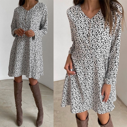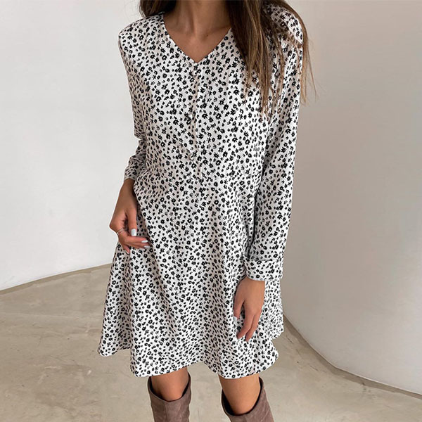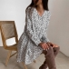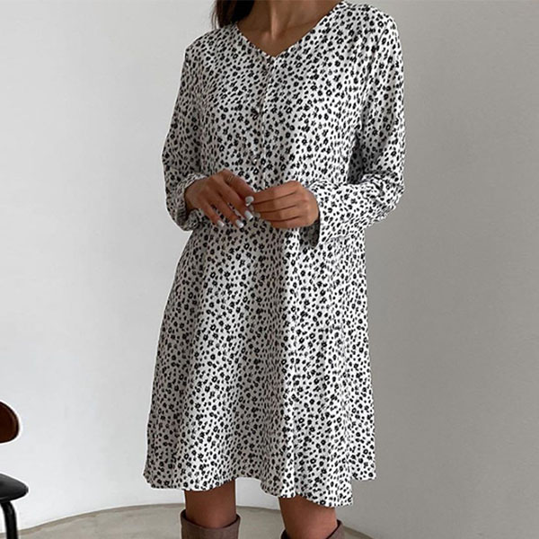 Cozy and effortlessly fashionable, this dress is yearning for a place in your wardrobe. Its chic printed details can help you catch more eyes. Finished with long sleeve,v-neck and a loose silhouette,this dress can ensure the comfy. You can just step out with this dress to start your wonderful day!