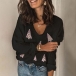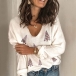 When the days get a little cold,this knit top is worth to have a place in your wardrobe. It is crafted from soft and breathable fabric,with long sleeve and v-neck design,this top knows how to give you a warm and comfortable day. And the printed details will add some extra charm. Give your wardrobe an update by adding this wonderful top.