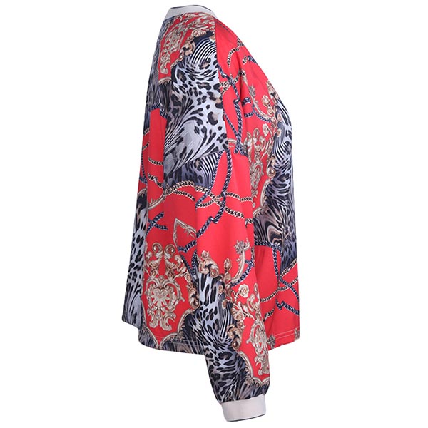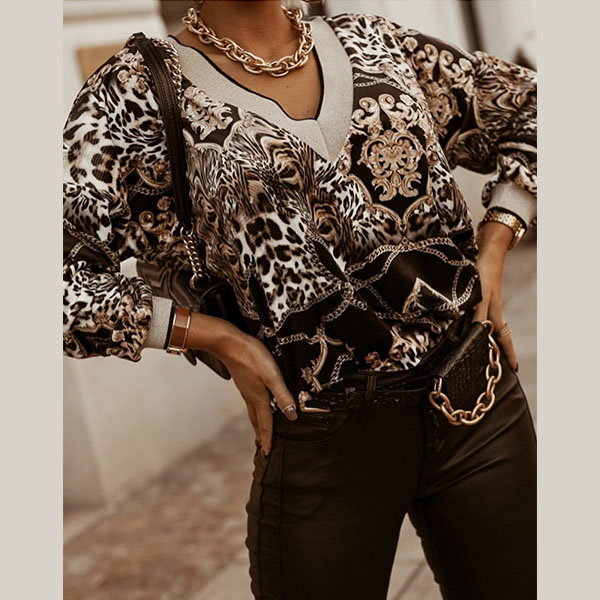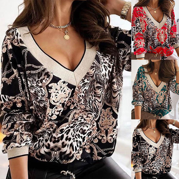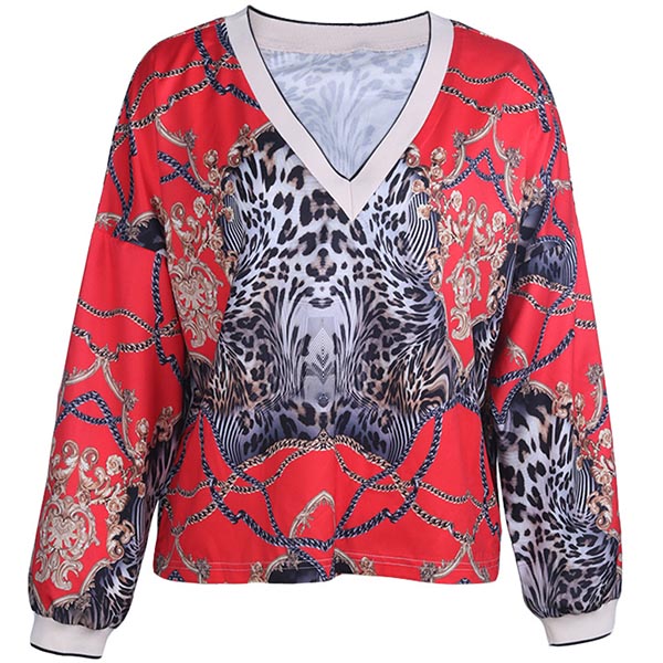 As for a laid-back yet fashionable daily look,this t-shirt can be a perfect addition. Crafted from soft and breathable fabric,with long sleeve and v-neck design,this piece can ensure you a comfortable day. And its chic printed details can help you win more eyes. Like it? Then invite it to your wardrobe.