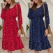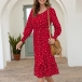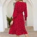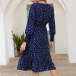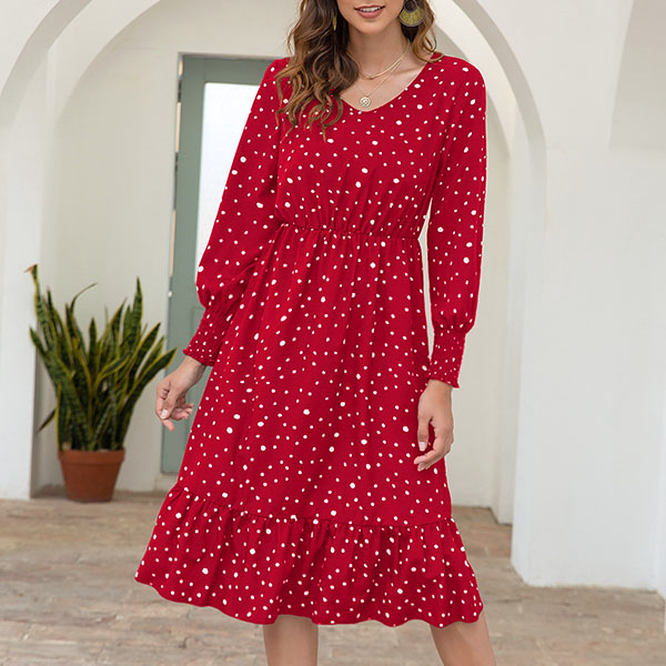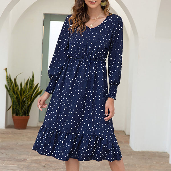 Fashion Long Sleeve V-neck Ruffle Hem Dots Printed Dress