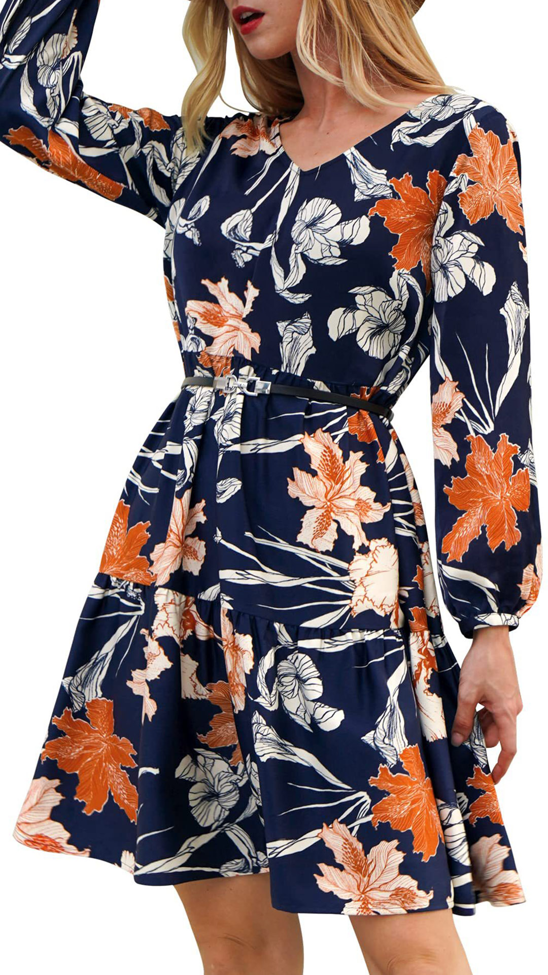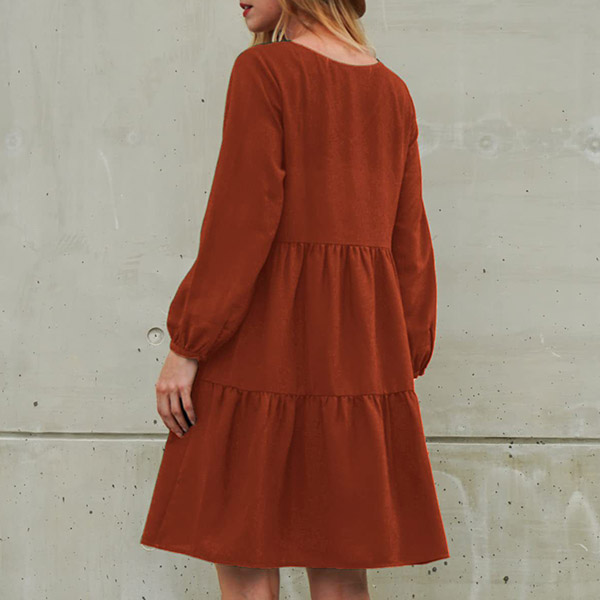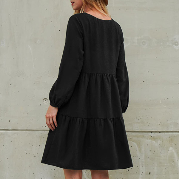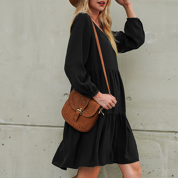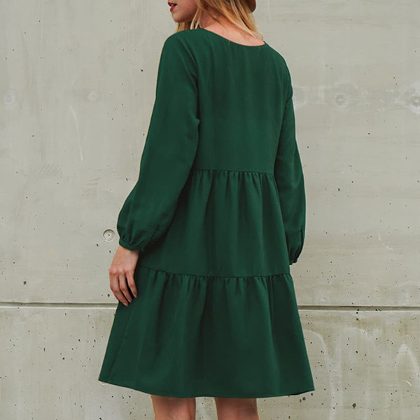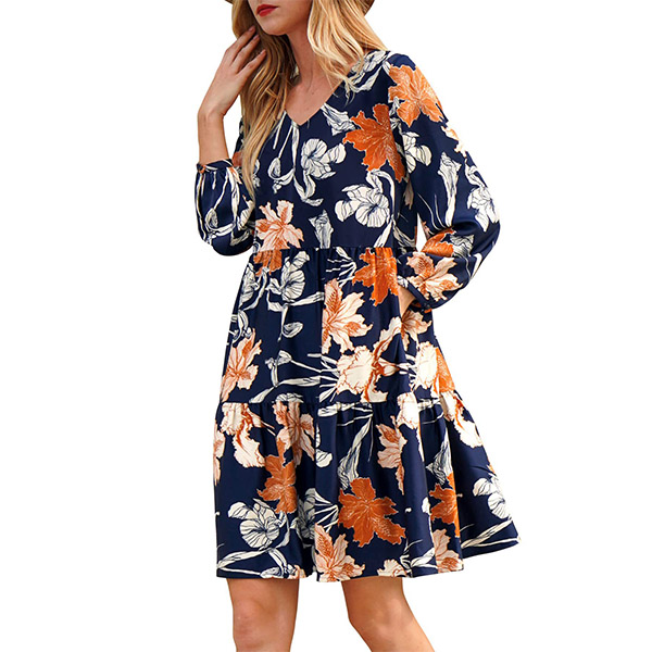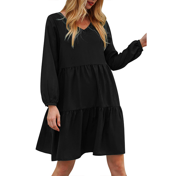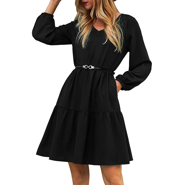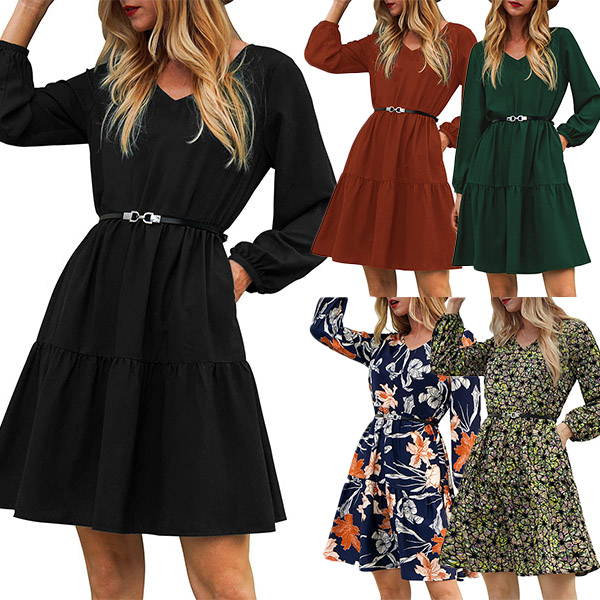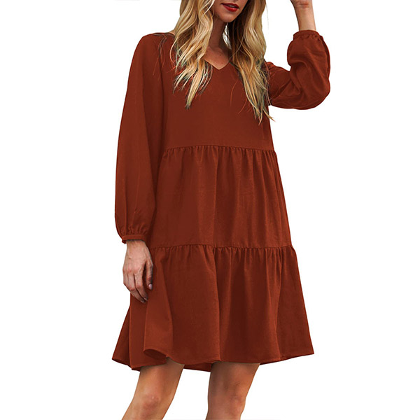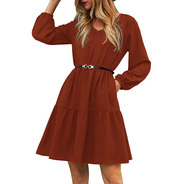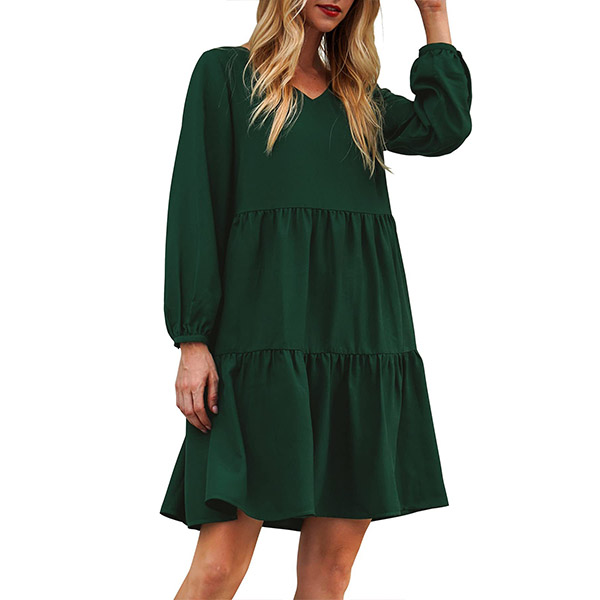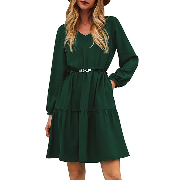 This dress that can be fit for different occasions is worth for your attention. It is finished with long sleeve,v-neck,high waist and ruffle hem design,this dress definitely can give you a comfortable day with its soft and breathable fabric. You can add a thin waistband if you wanna look more charming and beautiful.