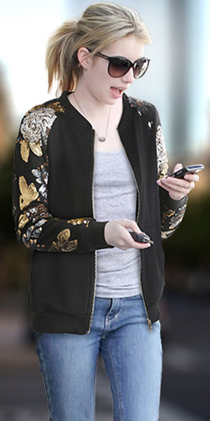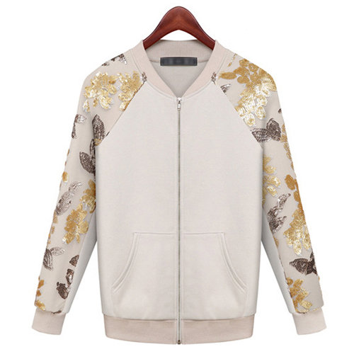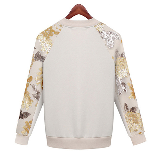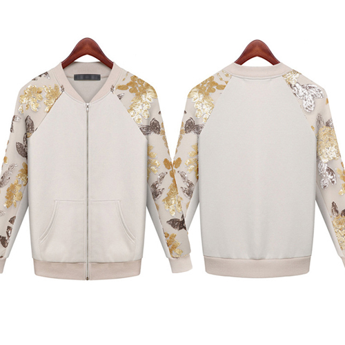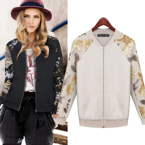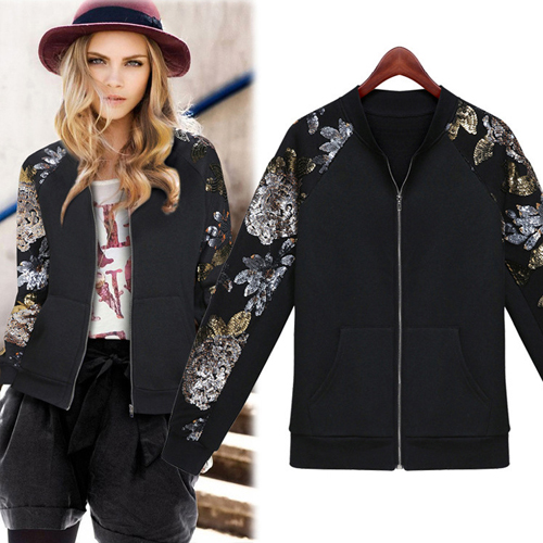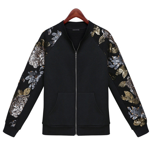 with long sleeve,zipper closure and v-neck design. What's more,its sequin spliced design makes