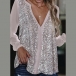 You can easily catch more eyes eyes when you wear this wonderful and stunning sequin top. Crafted from soft and breathable fabric,with long sleeve and v-neck design,this piece also can give you a comfortable day. Just match with your favourite skirt or pants to start your wonderful day!