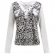 Fashion Long Sleeve V-neck Slim Fit Leopard Printed T-shirt