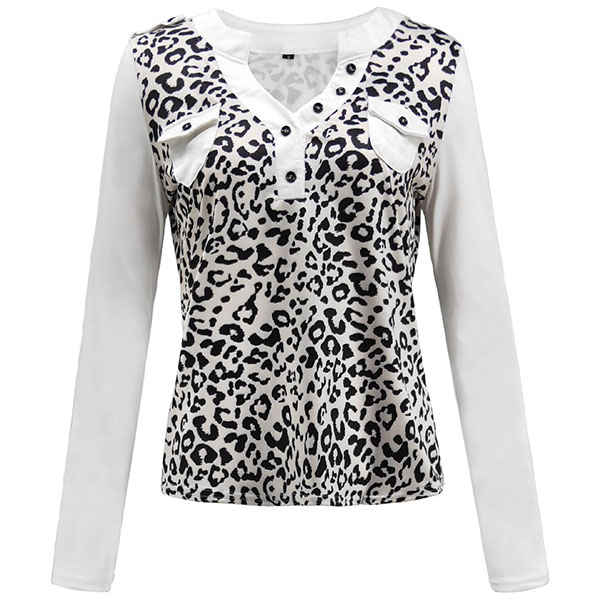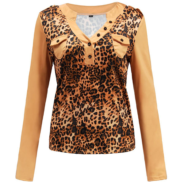 This t-shirt is finished with long sleeve,v-neck and a fit silhouette,which not only can give you a comfortable day,but also can showcase your perfect body-line. Moreover,the leopard printed details will make this piece look more eye-catching and stylish. A good choice for you in these spring and autumn days.