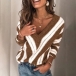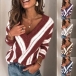 Fashion Long Sleeve V-neck Striped Knit Top(It falls small)