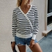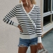 Fashion Long Sleeve V-neck Striped/Leopard Printed Knit Top