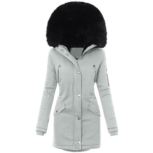 Fashion Long Sleeve Zipper Buttoned Long Sleeve Plush Spliced Warm Coat for Women