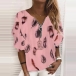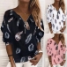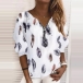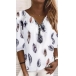 Fashion Long Sleeve Zipper V-neck Feather Printed Loose T-shirt