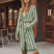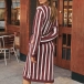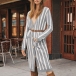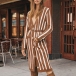 Fashion Long Sleve V-neck Loose Stripe Knit Cardigan