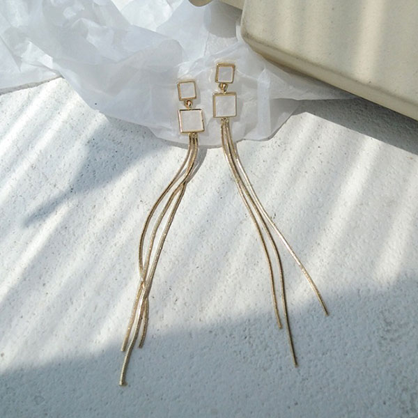 Finish a more shinning and attractive daily look with the help of this pair of earrings. Comes with a classic yet stylish gold tone,the long tassel design makes it look so attractive. When you wear them,your charm can have a boost.