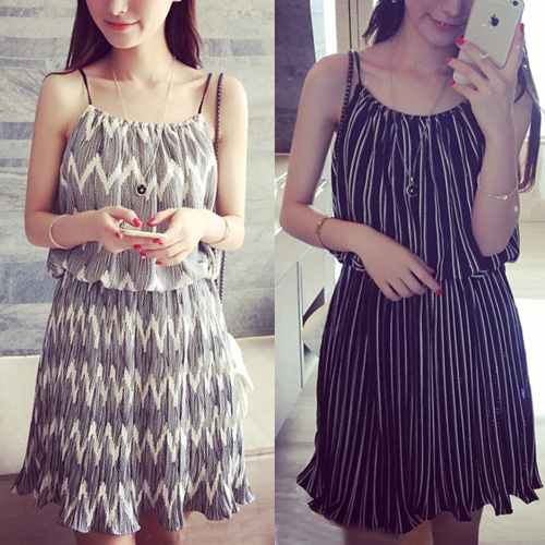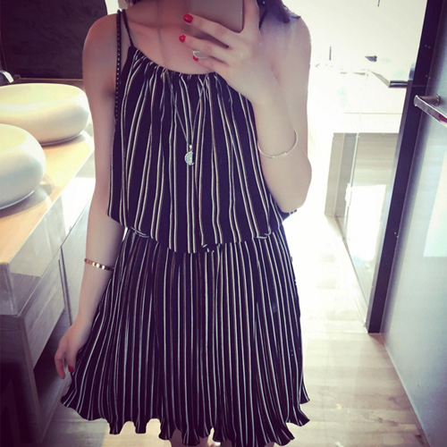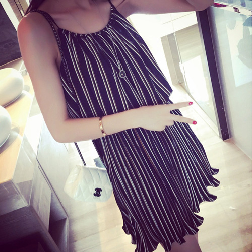 Fashion Loose Striped Sling Chiffon Dress