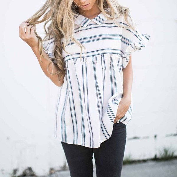 No matter for your workdays or casual weekends,this blouse can be your perfect partner. Striped style,designed with lotus sleeve,