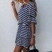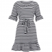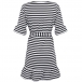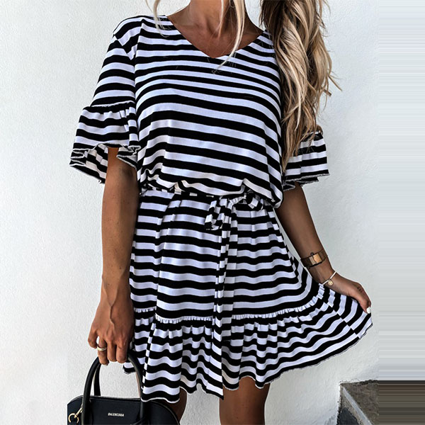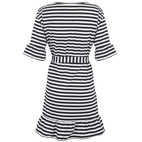 Fashion Lotus Sleeve V-neck Ruffle Hem Striped Dress